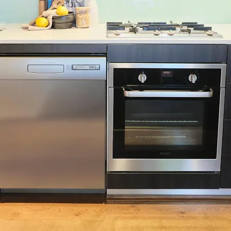 Eine voll ausgestattete Küchenzeile ist mit einem Herd und einem Geschirrspüler für die Zubereitung von Mahlzeiten für Selbstversorger ausgestattet. Der Flughafen Melbourne Essendon ist 25 km entfernt, während der Busbahnhof High Street ein paar Schritte entfernt vom Apartment liegt.